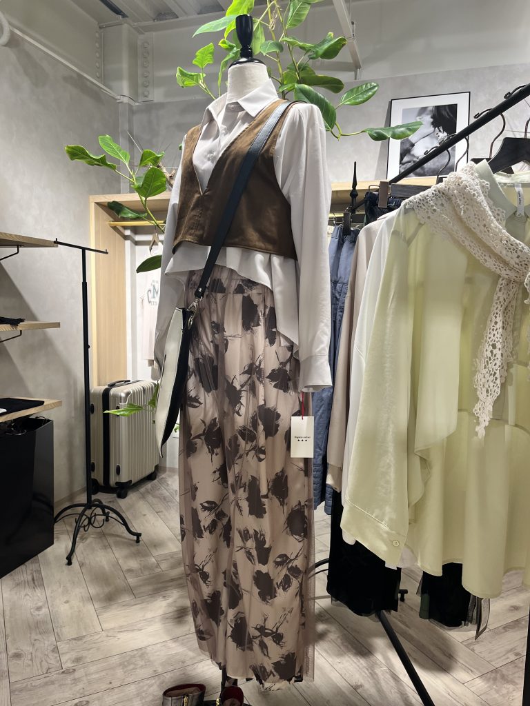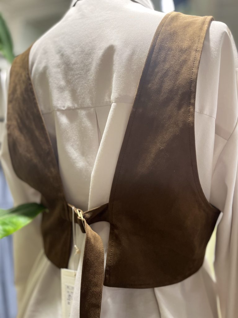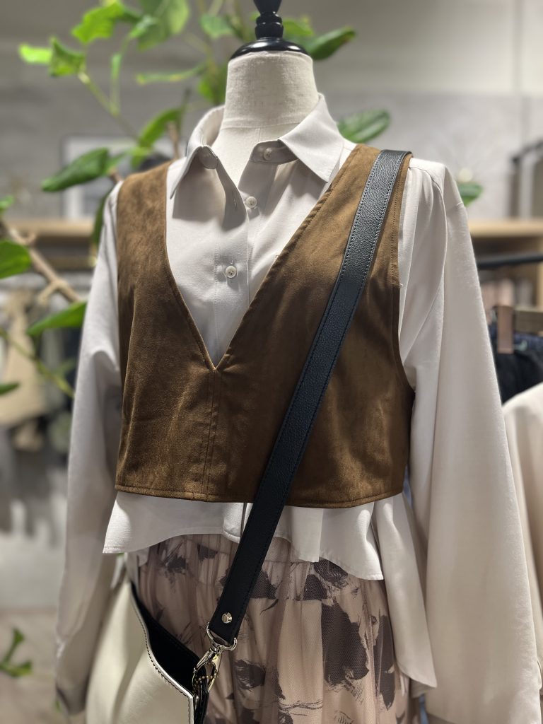 前後差が特徴的なデザインシャツにスエードタッチのベスト。