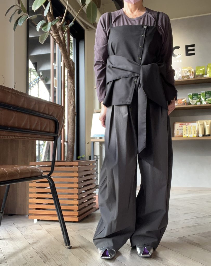 ウエスト位置を高めで切り替えてあるのでスタイリッシュにまとまります。