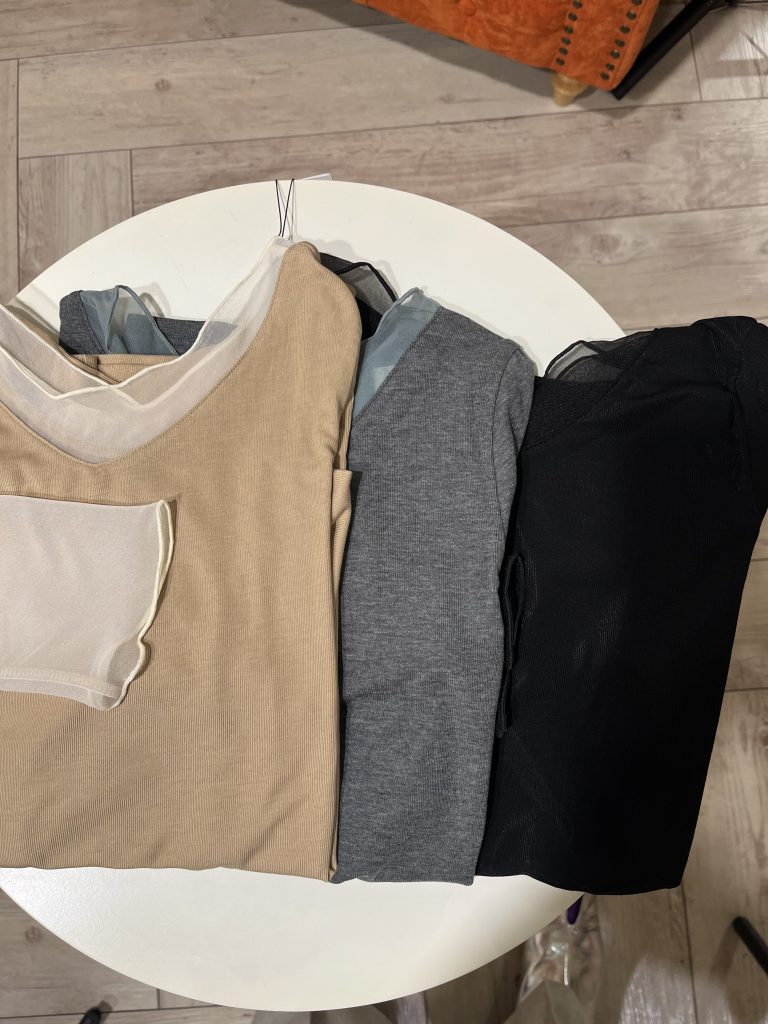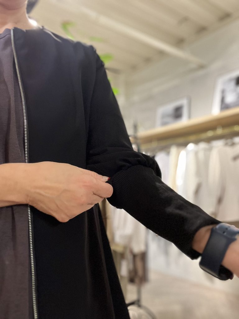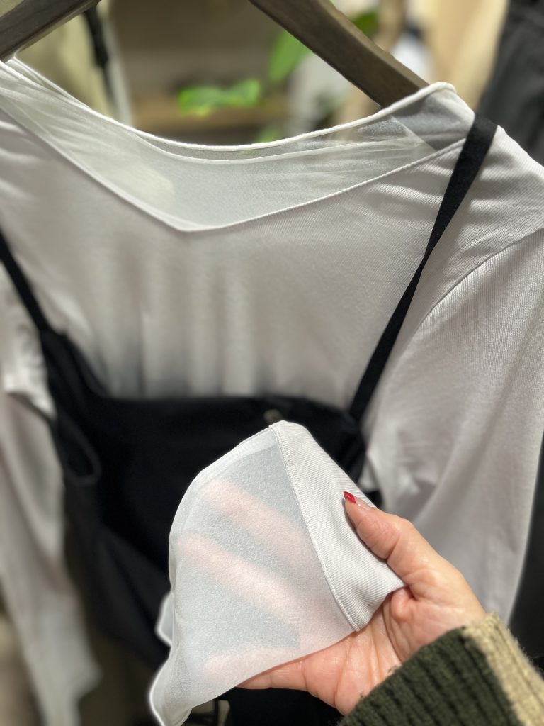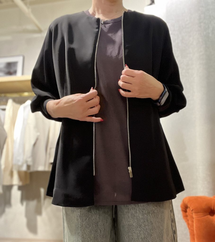 首とお袖がシースルーなので、重ね着で使うと、オシャレ度が増すんですよね。