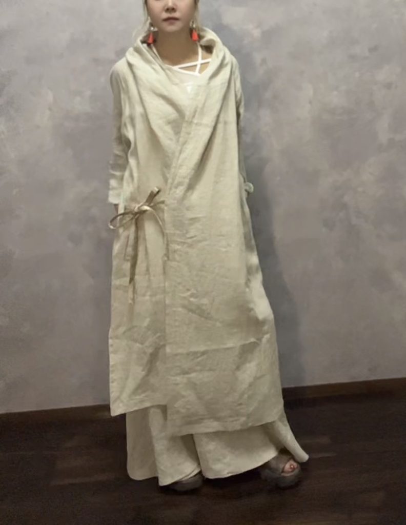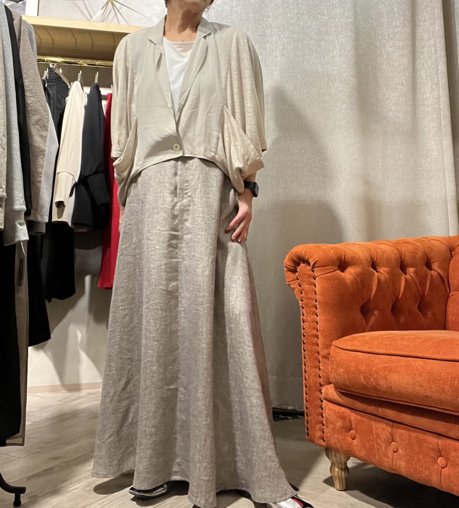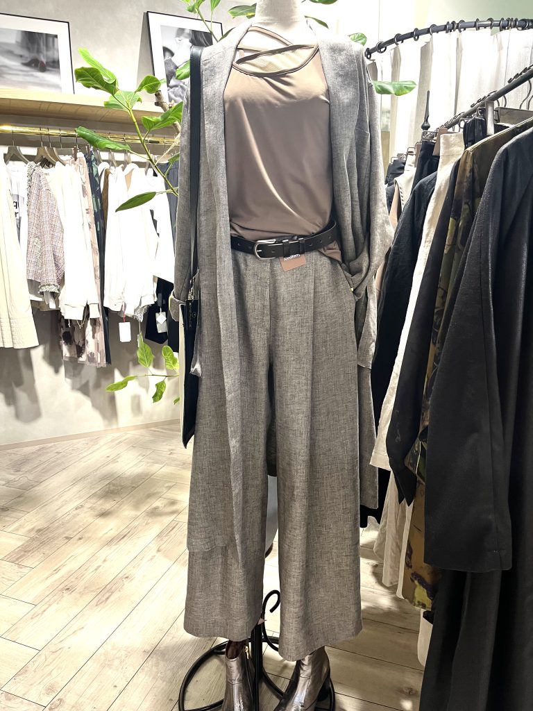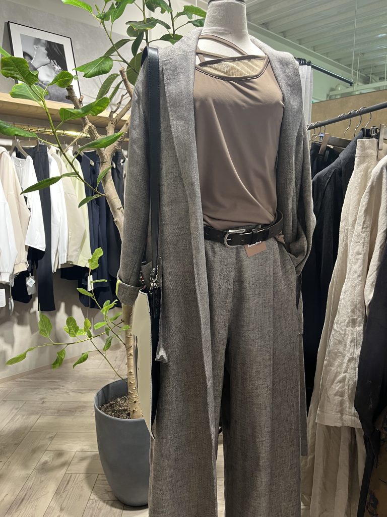 フレンチリネンなので長いスパンで着れるロングコートと同素材のワイドパンツ♡♡