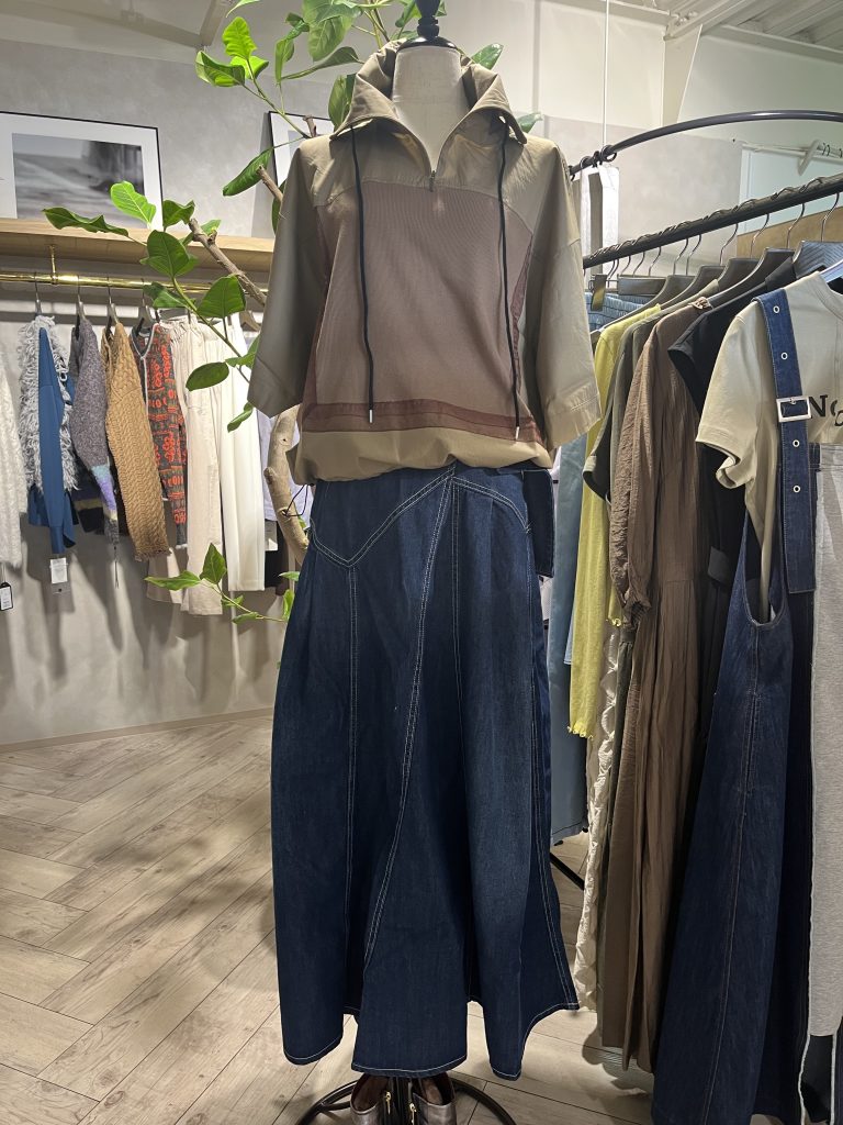 昨年秋に大人気だったデニムサイドベルトスカートが再び軽い素材にブラッシュアップして登場です!!