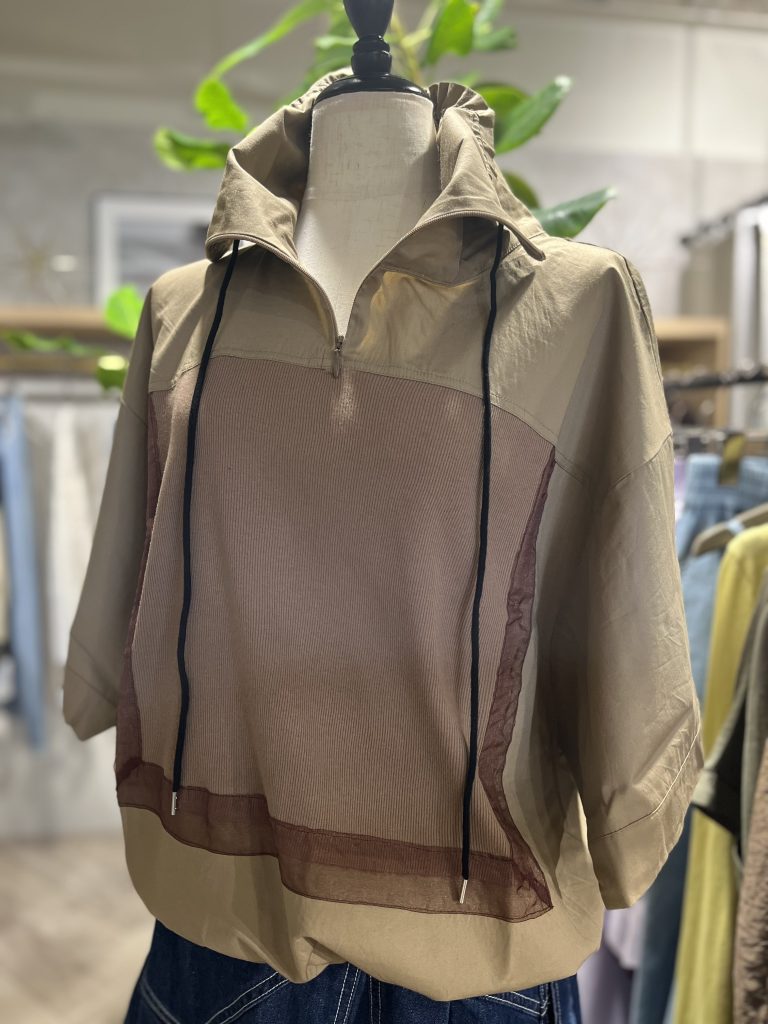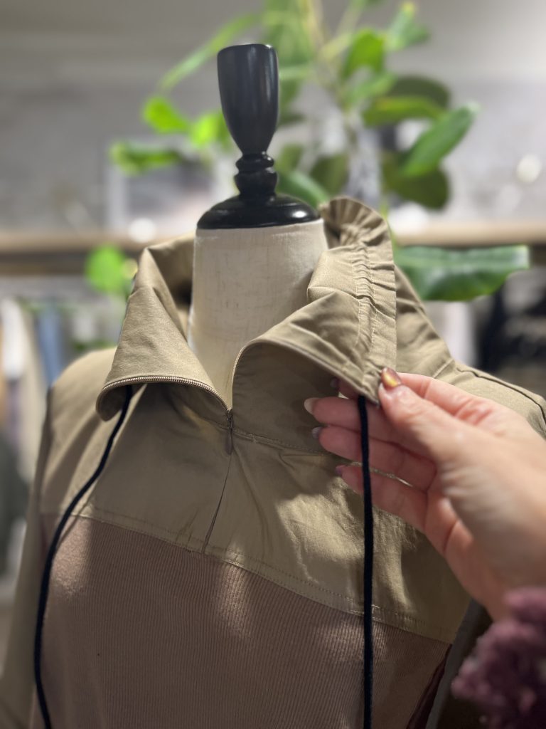ファスナー使いのスタンドネックで自由な着こなしが楽しめます。