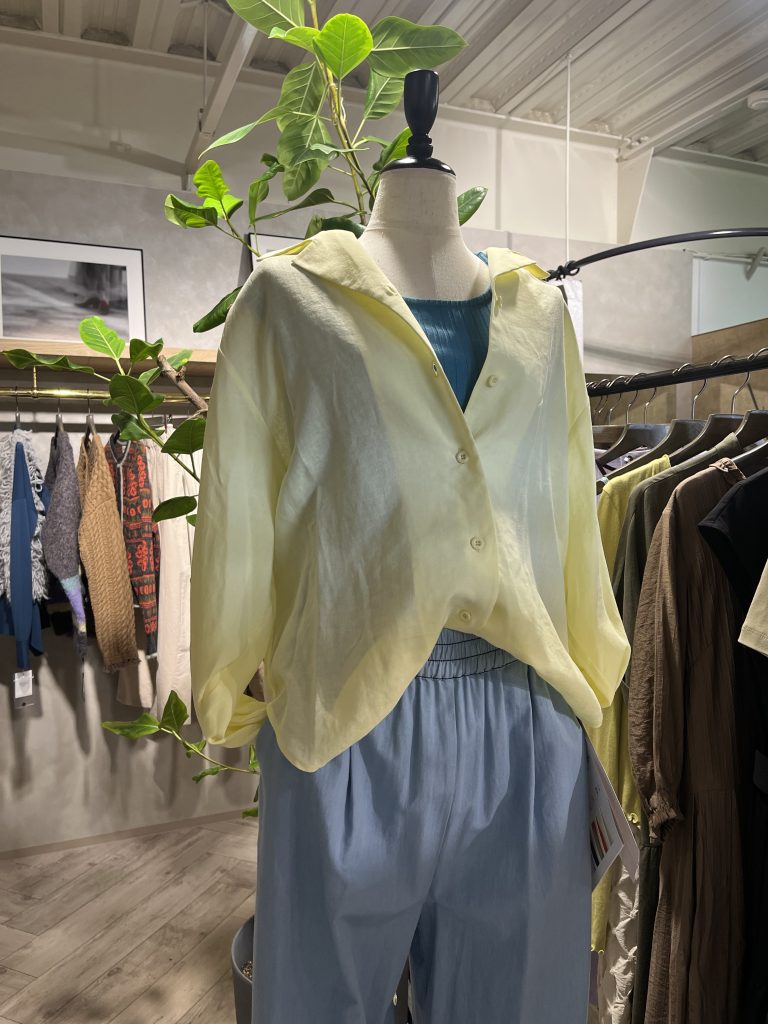 夏のカラーブラウスは1枚は持っていたいアイテムです。