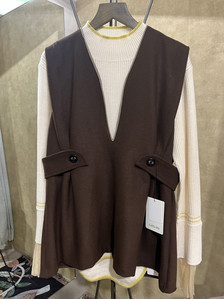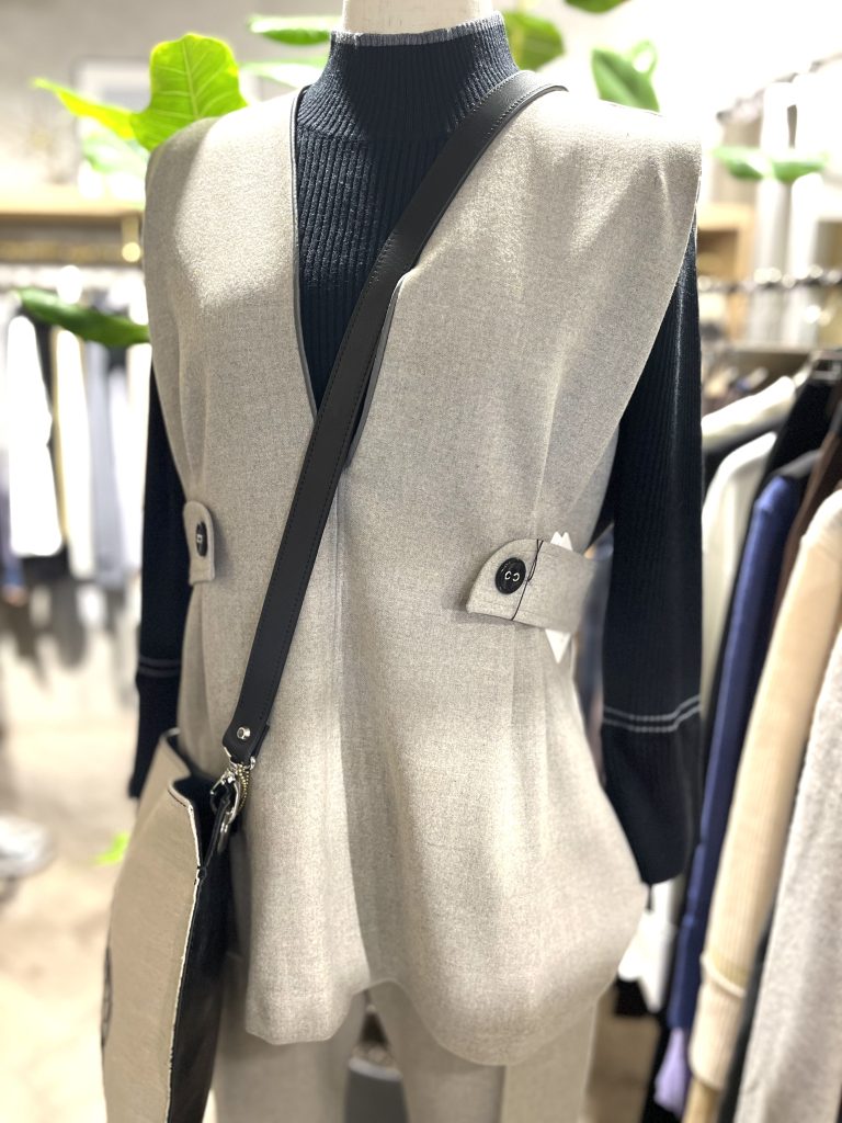 ハイゲージニットは、1枚で着てもオシャレですが、ベストやオールインワンなどに合わせるには丁度良いアイテムです。