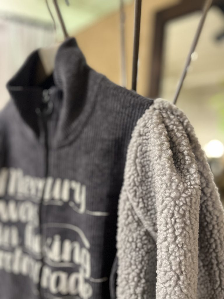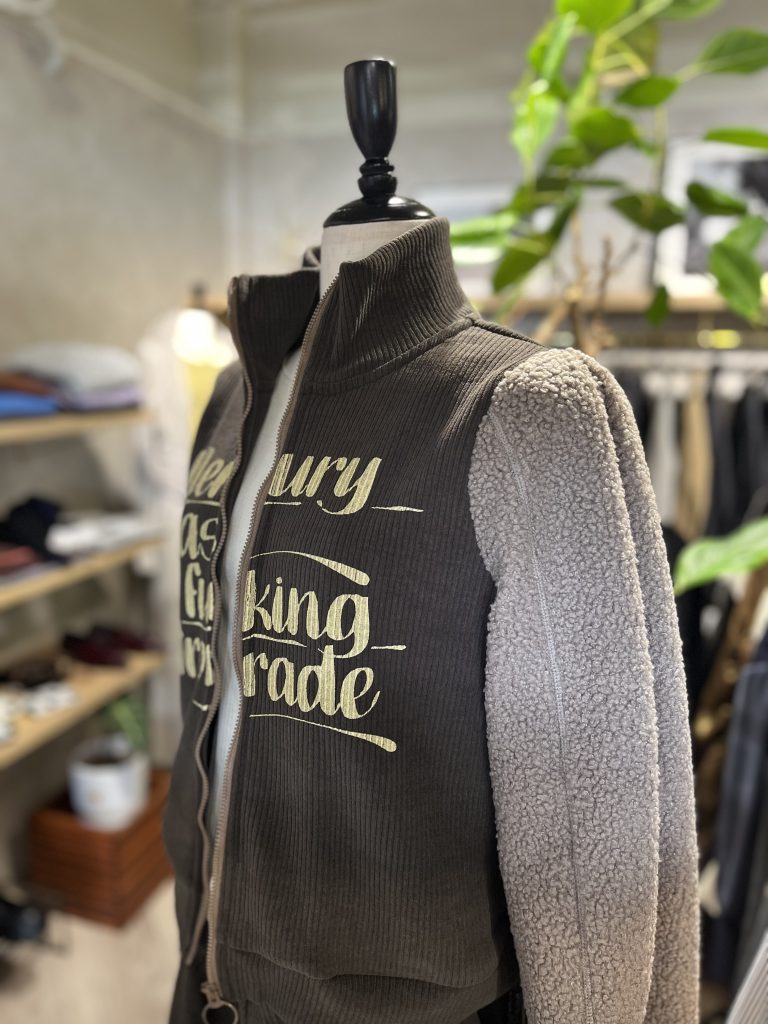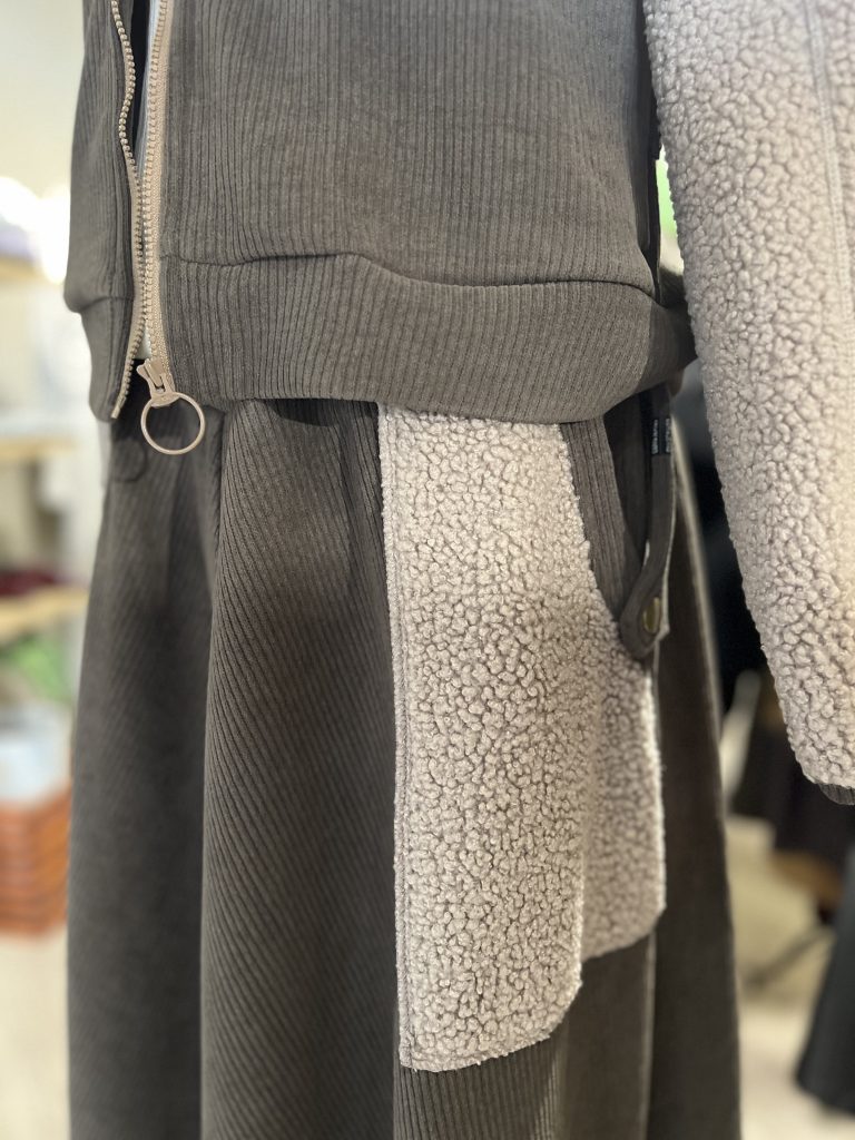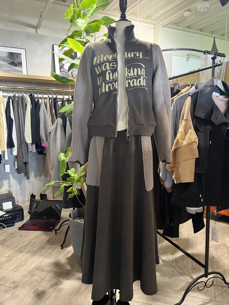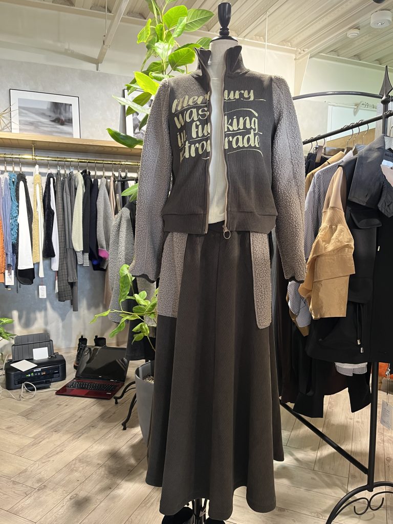 フロントがファスナー仕立なので羽織りとしても使えるオシャレな最強アイテムです。