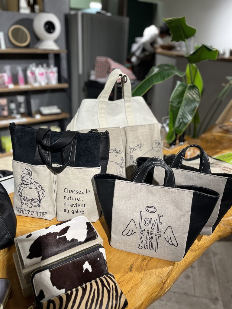 今回のお披露目会は、基本全品即売できますが、店頭に置いてないカラーや刺繍入りのリネンモチーフは、用意しているスワッチで、お好みのタイプにてオーダー出来ます。