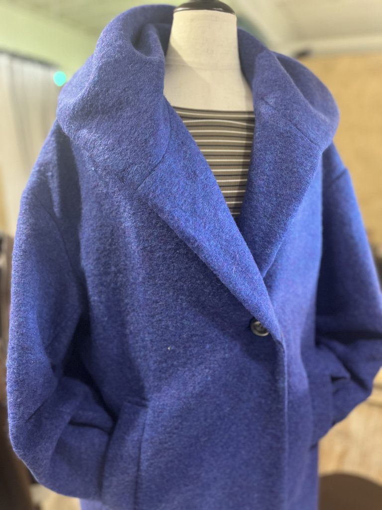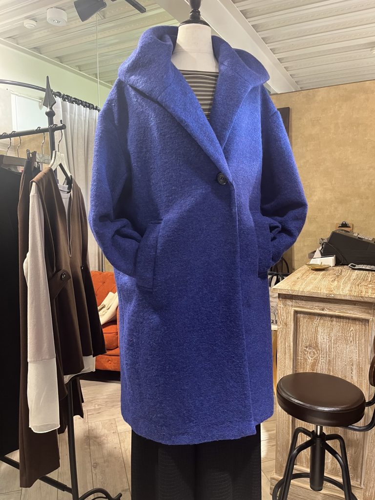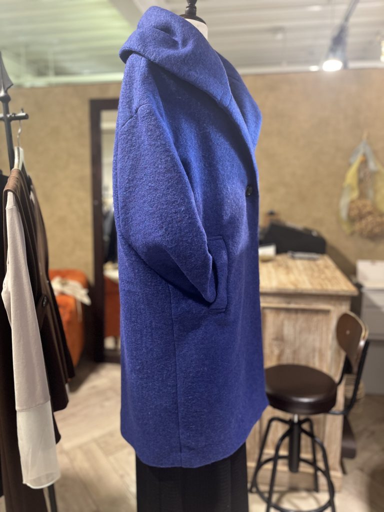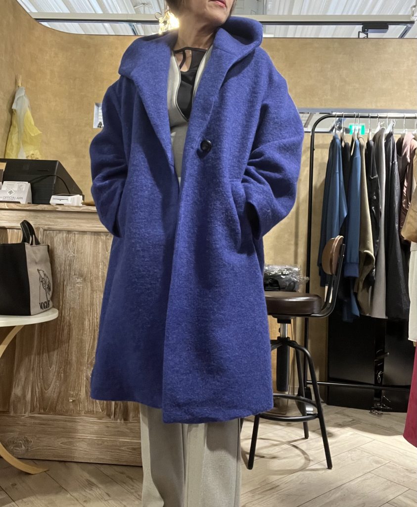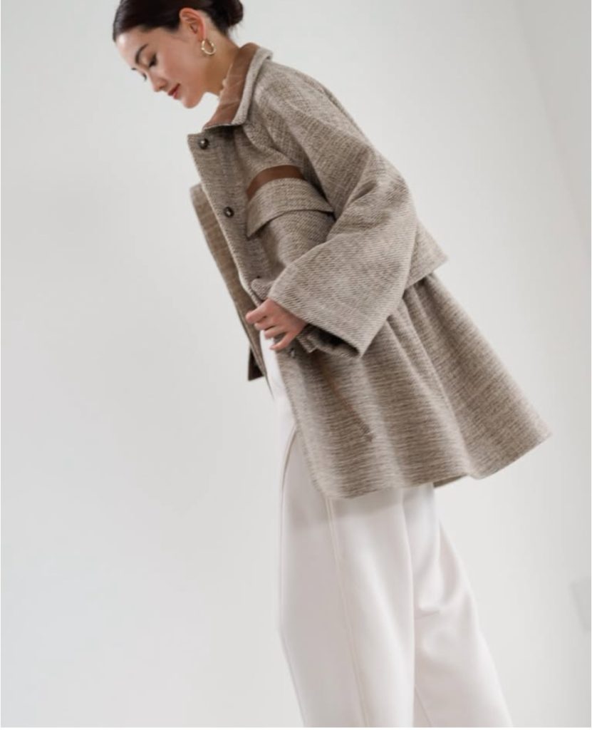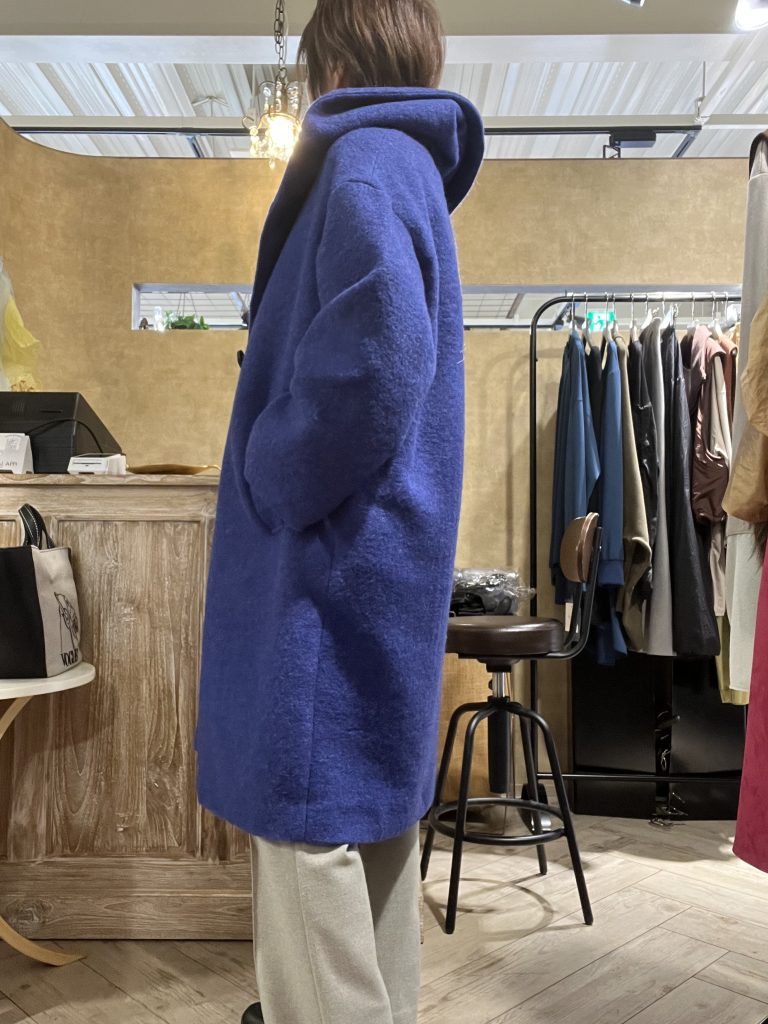 フードタイプの大きめな襟は、小顔効果を発揮してくれます。