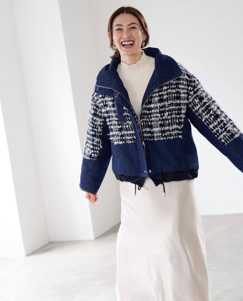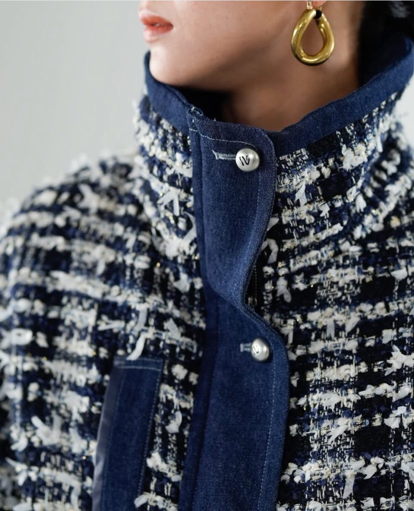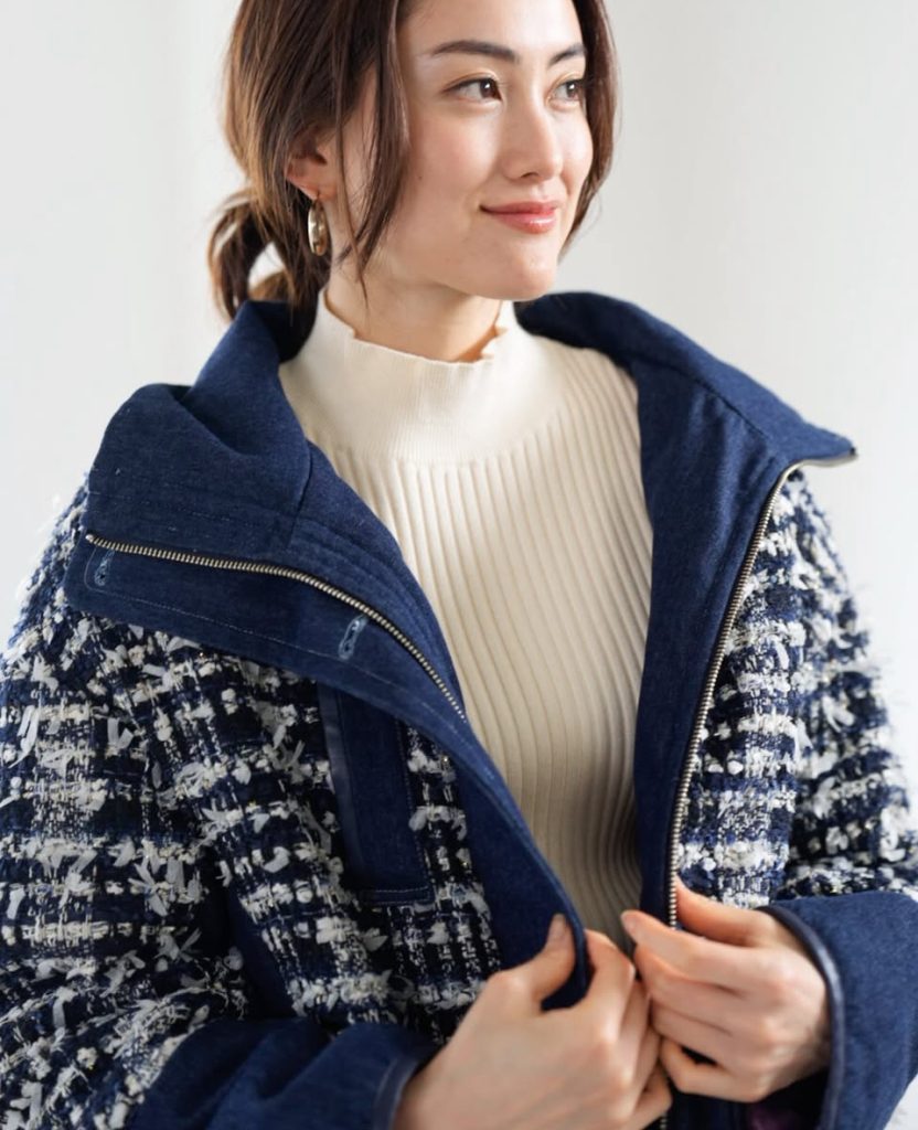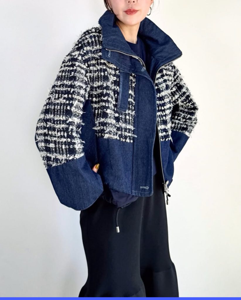 デニムのカジュアルさとツイードのエレガンスが絶妙に組み合わさり洗練された印象です?