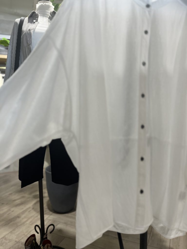 お袖はドルマン風で、女性らしい印象のシャツ♡