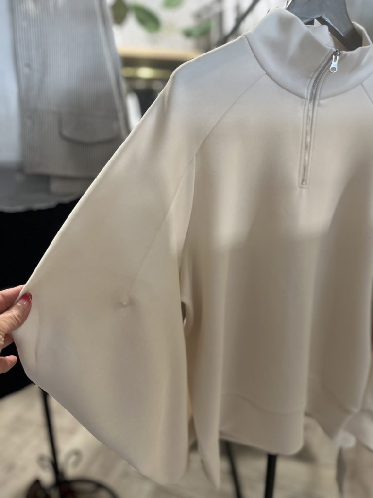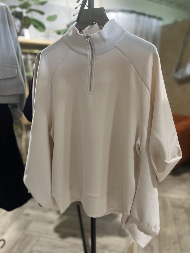 肌あたりのいい柔らかなポンチ素材のプルオーバー。
