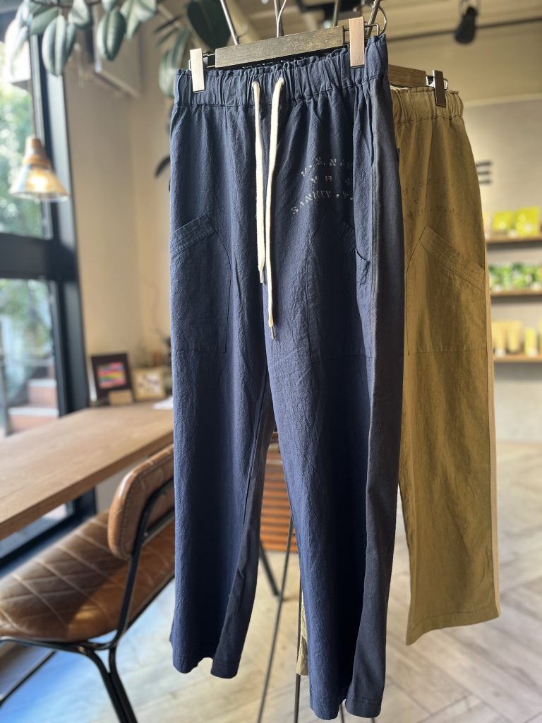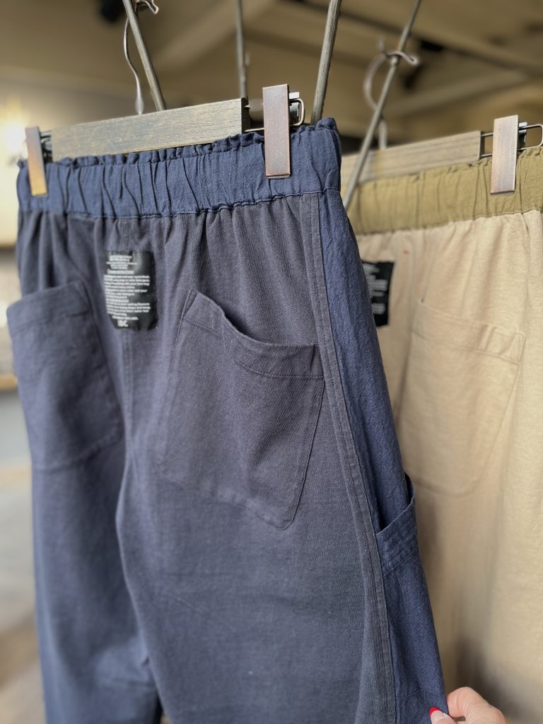 リネン×コットンの異素材切り替えがカジュアルのその上をいくパンツです。