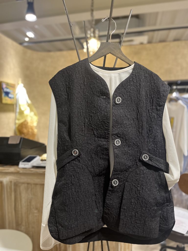 このジレはインナーを選ばないタイプなので、ニットやカットソー、ブラウス…何と合わせてキマリます◎
