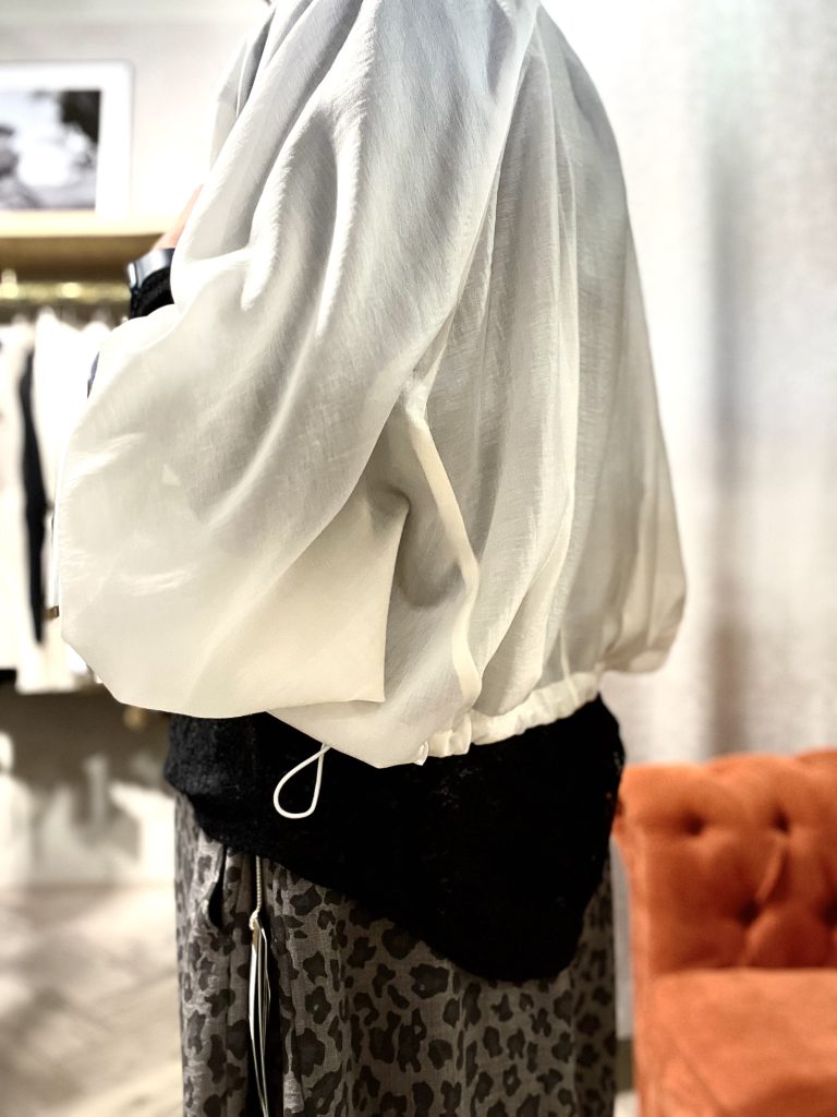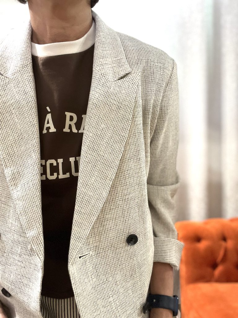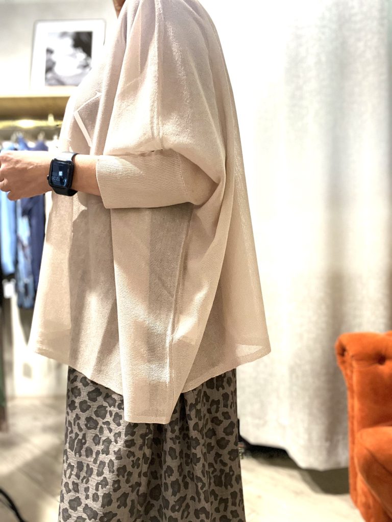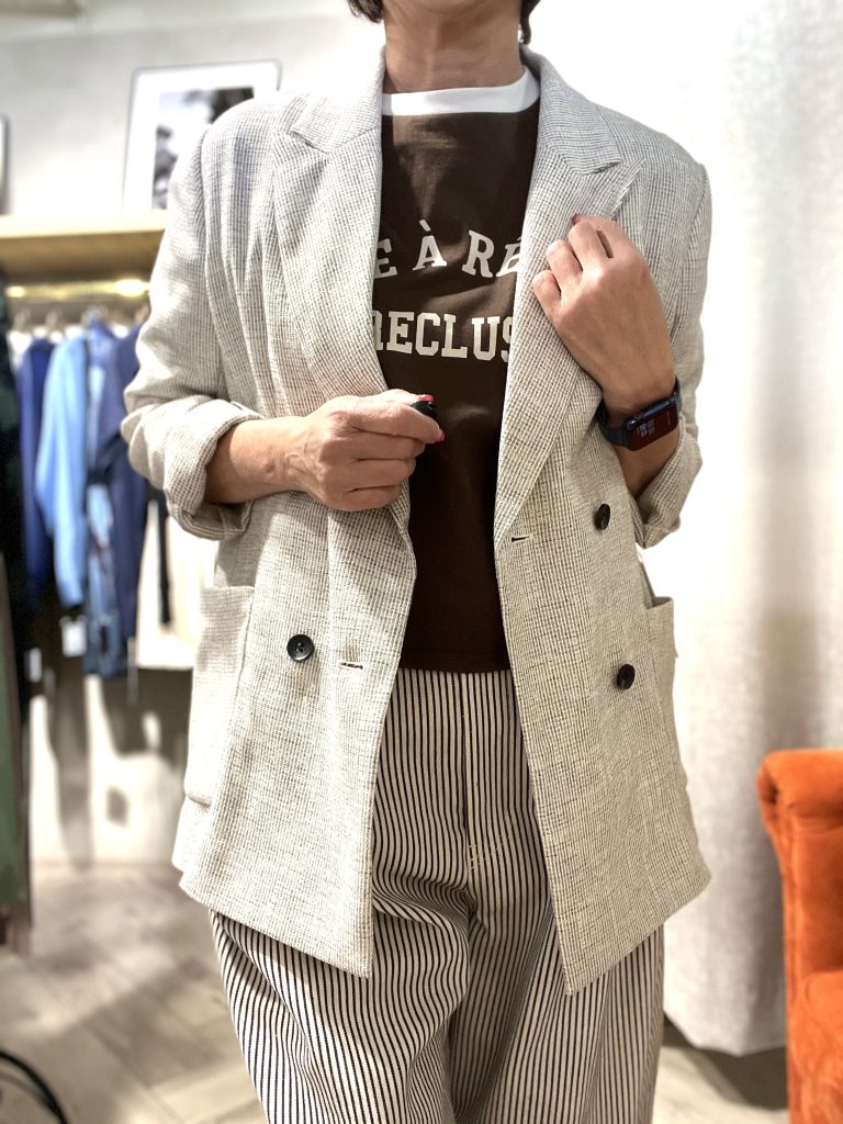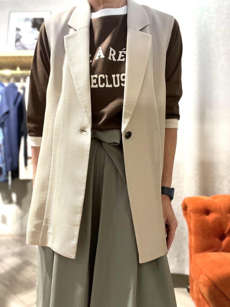 インナーとのレイヤードでスッキリ見せるのがコツです。