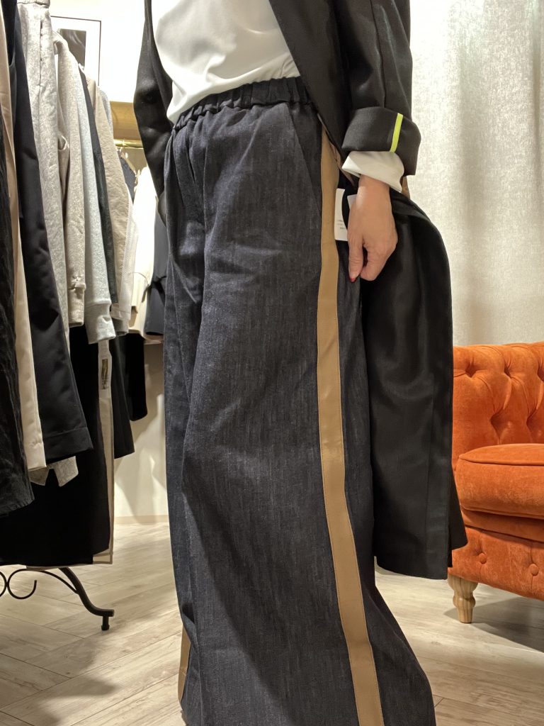 合わせたパンツはサイドラインのデニムパンツ。
